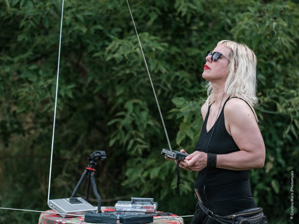 Marta Zapparoli und Sabine Vogel arbeiten schon mit vielen Jahren zusammen, sowohl as Duo als auch in unterschiedlichen Projekten. Zapparoli ist dem Paretzer Feld sehr verbunden, da sie dort 2020 ihre ersten Experimente, Aufnahmen von Sternschnuppen, für ihr Projekt Voices of Stardust, gemacht hat. Zapparoli stammt, wie Walker und Tarozzi, auch aus der Region Emilio-Romagna und nutzt u.a. Bäume als Antennen, um Frequenzen und Klänge zu generieren, die sie dann als musikalisches Material in einer Zusammenarbeit mit Vogel einzusetzten. Bäume als Antennen zu nutzen ist eine Praxis, die während des 2. Weltkrieges häufig vom Militär in Kriegen genutzt wurde. Vogel und Zapparoli deuten dies um, die Baumantennen dienen nicht als „Tarnung“, sondern als Antennen sich mit der Natur und der Umgebung zu verbinden und durch sie wahrzunehmen, zu hören und Musik entstehen zu lassen.